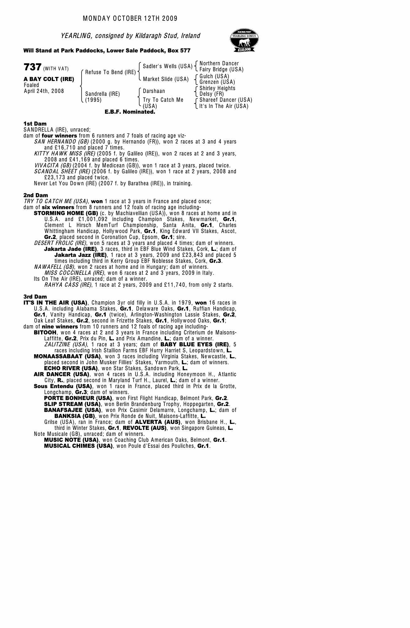 October Yearling Sale, Book 1 2008 lot 191 F. by Barathea (IRE) 2007, Kildaragh Stud, Ireland (Agent)=>Vendor 48,000 gns