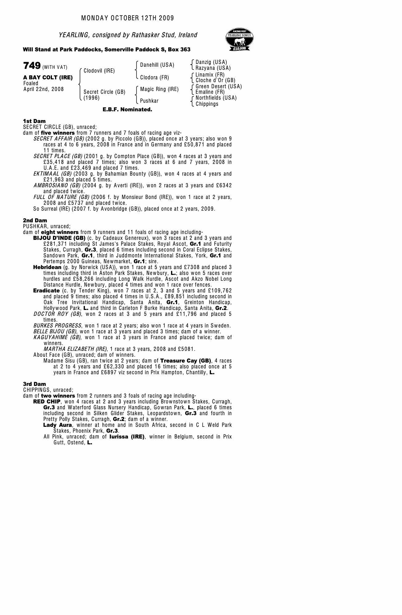 October Yearling Sale, Book 1 2004 lot 585 C. by Bahamian Bounty (GB) 2003, Tally-Ho Stud, Ireland=>Shadwell Estate Company 130,000 gns