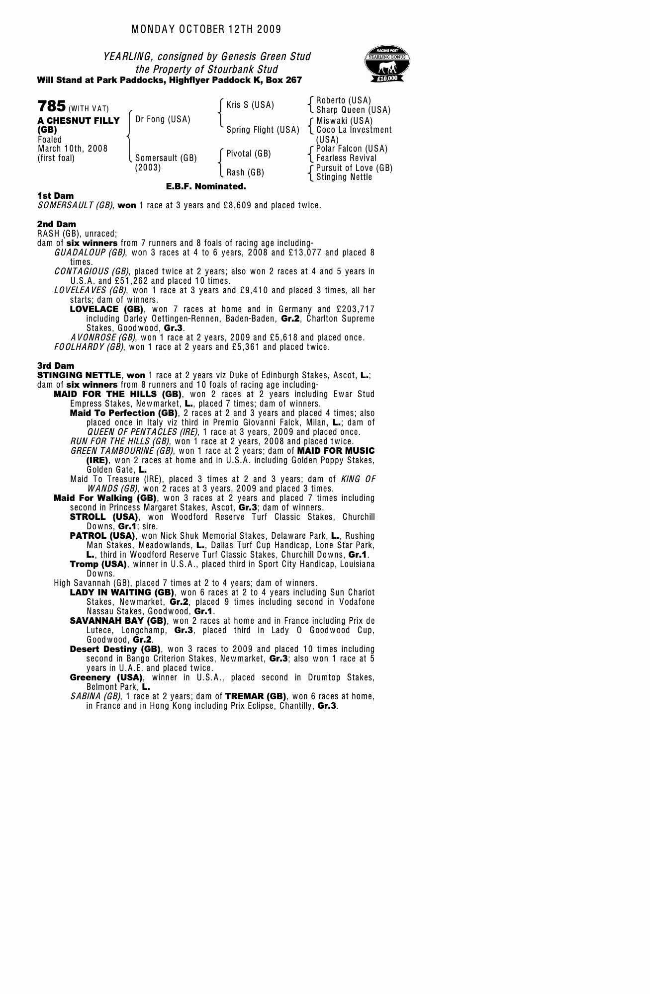 October Yearling Sale, Book 3 2012 lot 1733 F. by Bahamian Bounty (GB) 2011, Genesis Green Stud=>Tuite/Hillen 15,000 gns