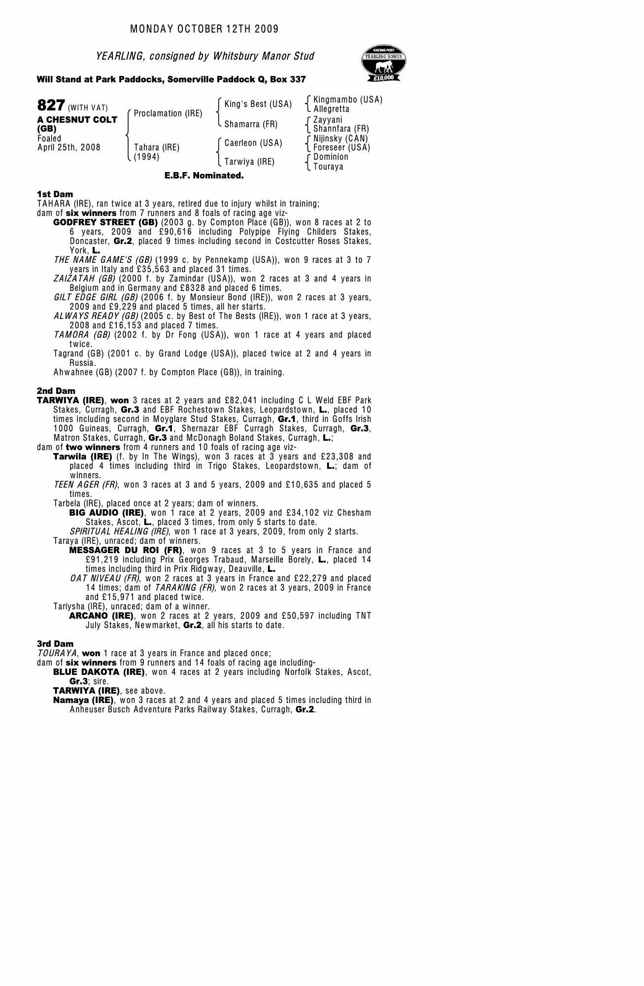 October Yearling Sale, Book 1 2010 lot 644 C. by Notnowcato (GB) 2009, Barnane Stud, Ireland (Agent)=>Vendor 35,000 gns