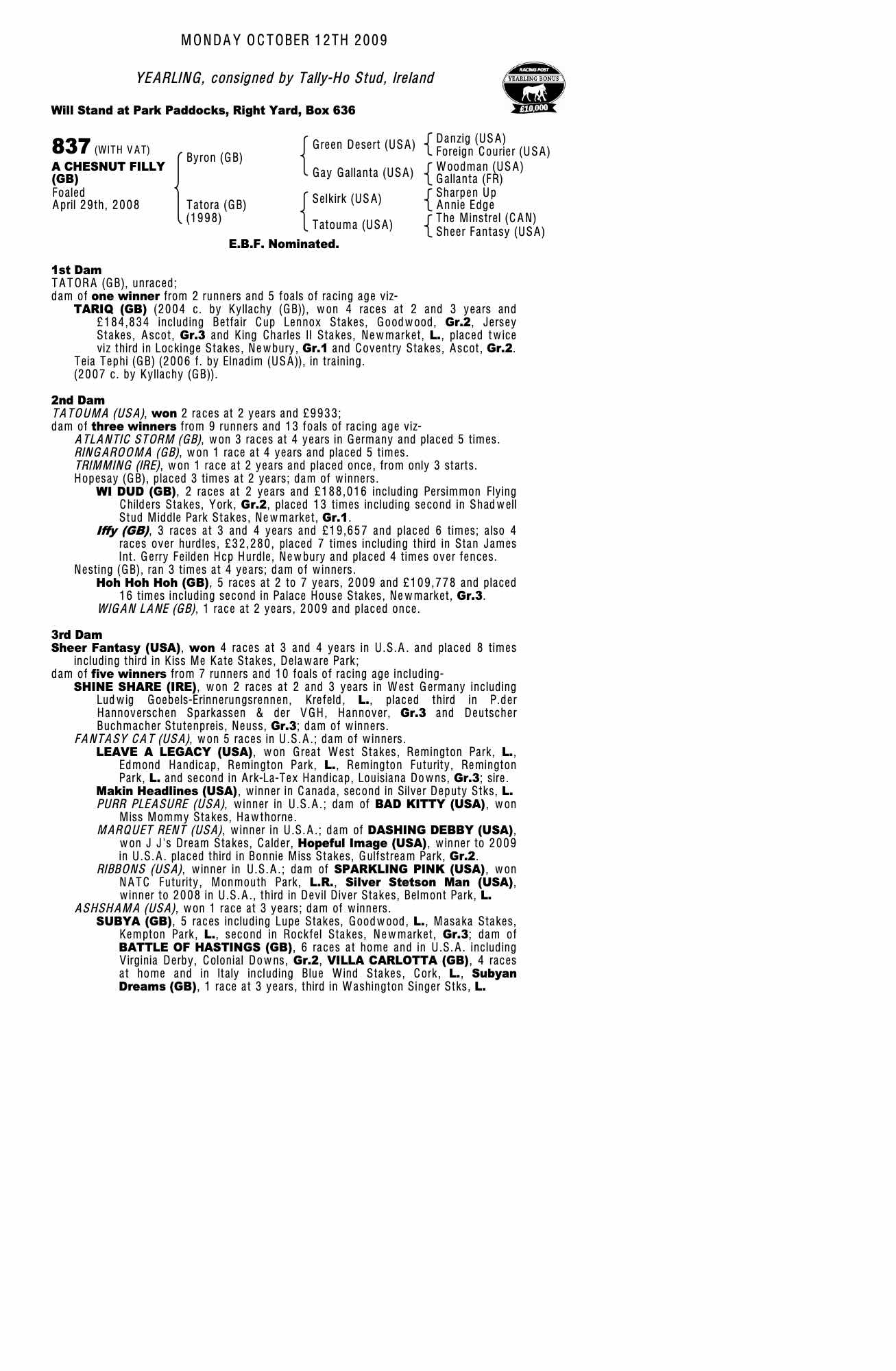 Consignor: Tally-Ho Stud, Ireland