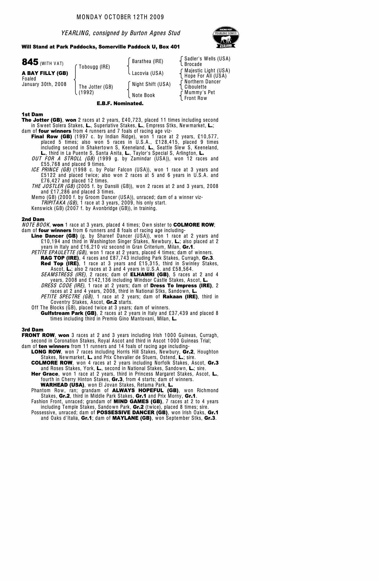 February Sale 2009 lot 148 The Jostler (GB) (F. by Dansili (GB)), Faringdon Place Stables (B. Hills)=>Hugo Lascelles Bloodstock 23,000 gns