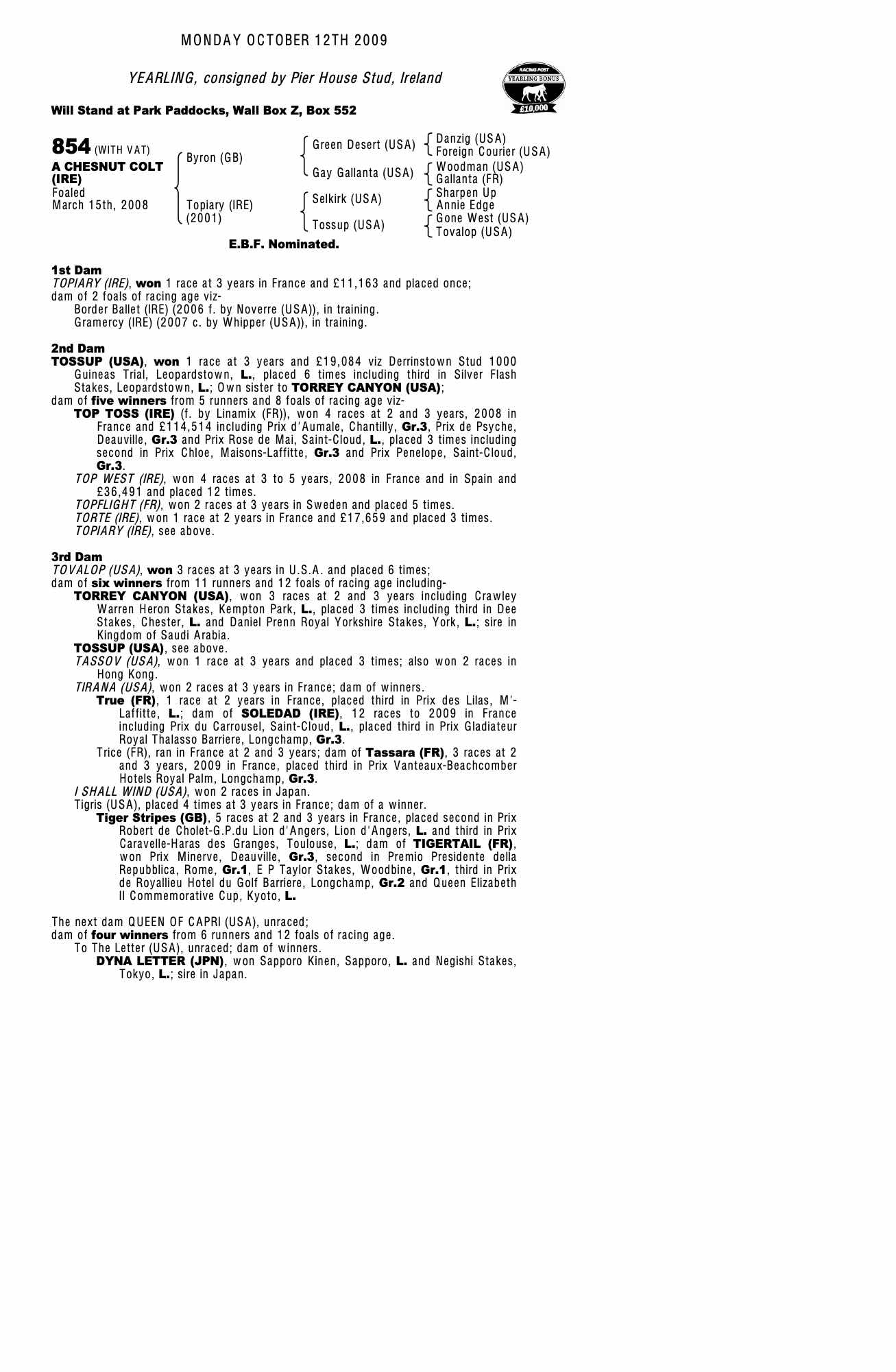 October Yearling Sale, Book 2 2010 lot 1697 F. by Lawman (FR) 2009, Ridge Manor Stud, Ireland=>Lot Not Sold 19,000 gns