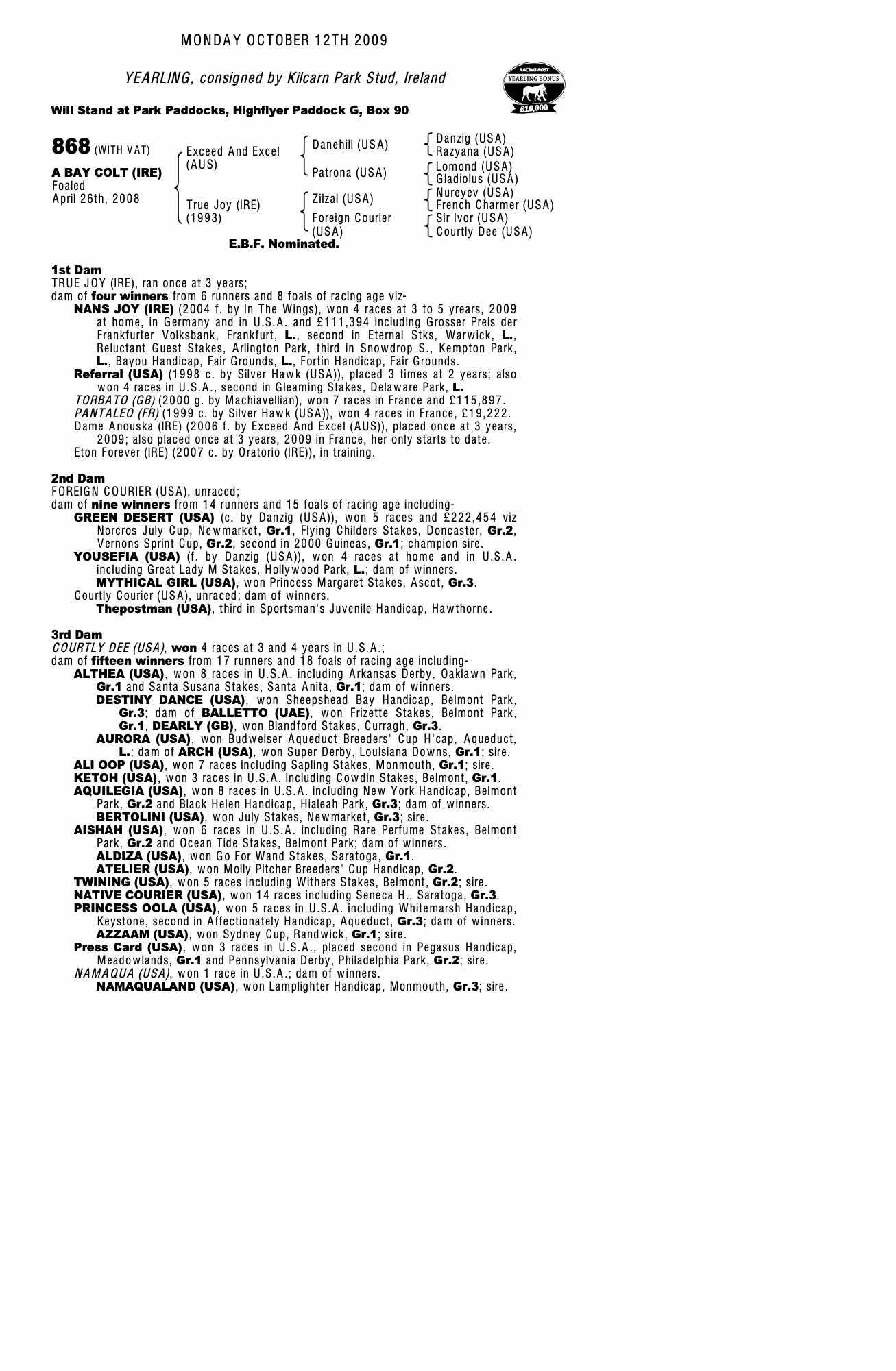 October Yearling Sale, Book 1 2003 lot 399 F. by Rainbow Quest (USA) 2002, Kilcarn Park, Ireland=>Lot Not Sold 100,000 gns