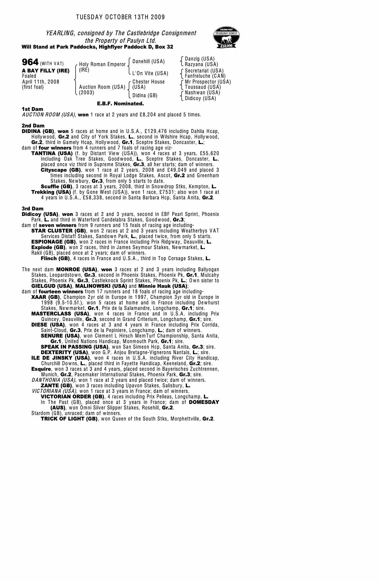December Foal Sale 2009 lot 1014 C. by Dylan Thomas (IRE) 2009, The Castlebridge Consignment=>J Railton 42,000 gns