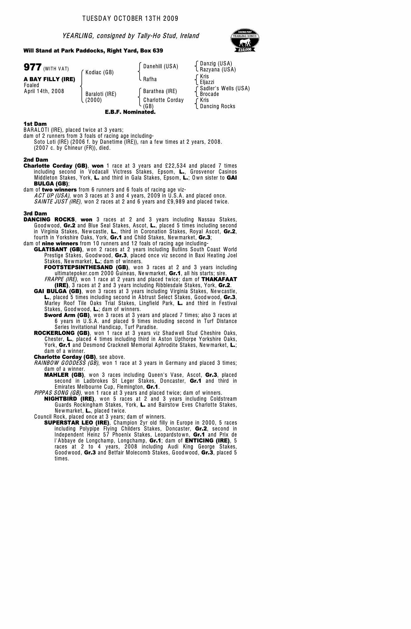 Consignor: Tally-Ho Stud, Ireland