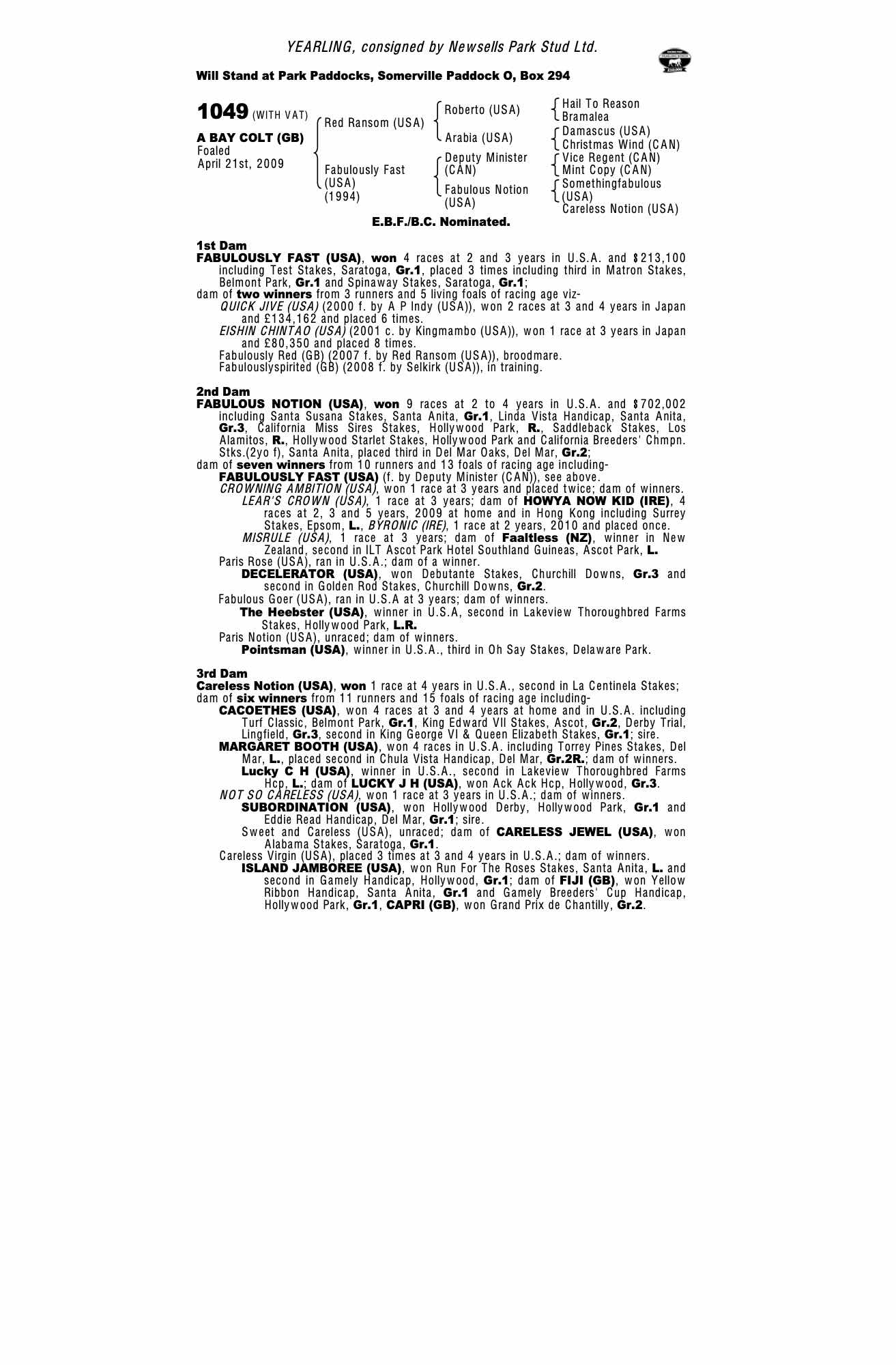 Consignor: Newsells Park Stud Ltd.