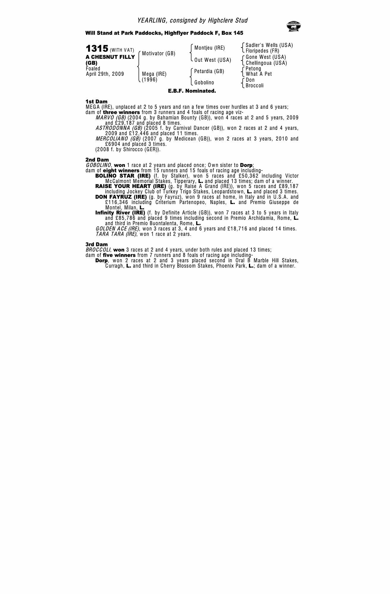 December Yearling Sale 2009 lot 166 F. by Shirocco (GER) 2008, Highclere Stud=>D Haine 9,000 gns