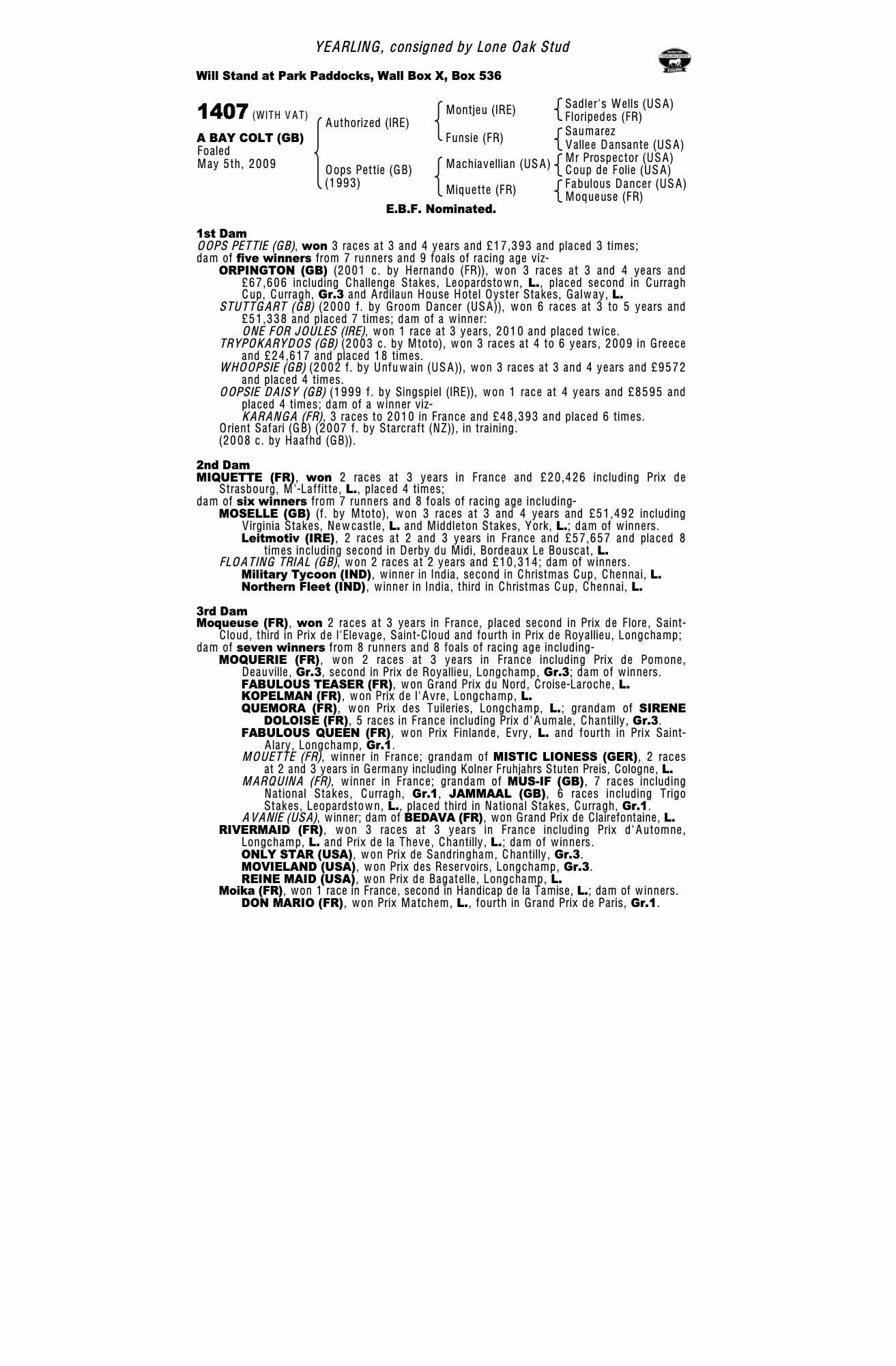 October Yearling Sale, Book 2 2009 lot 1424 C. by Haafhd (GB) 2008, Lone Oak Stud=>MW Easterby 4,000 gns