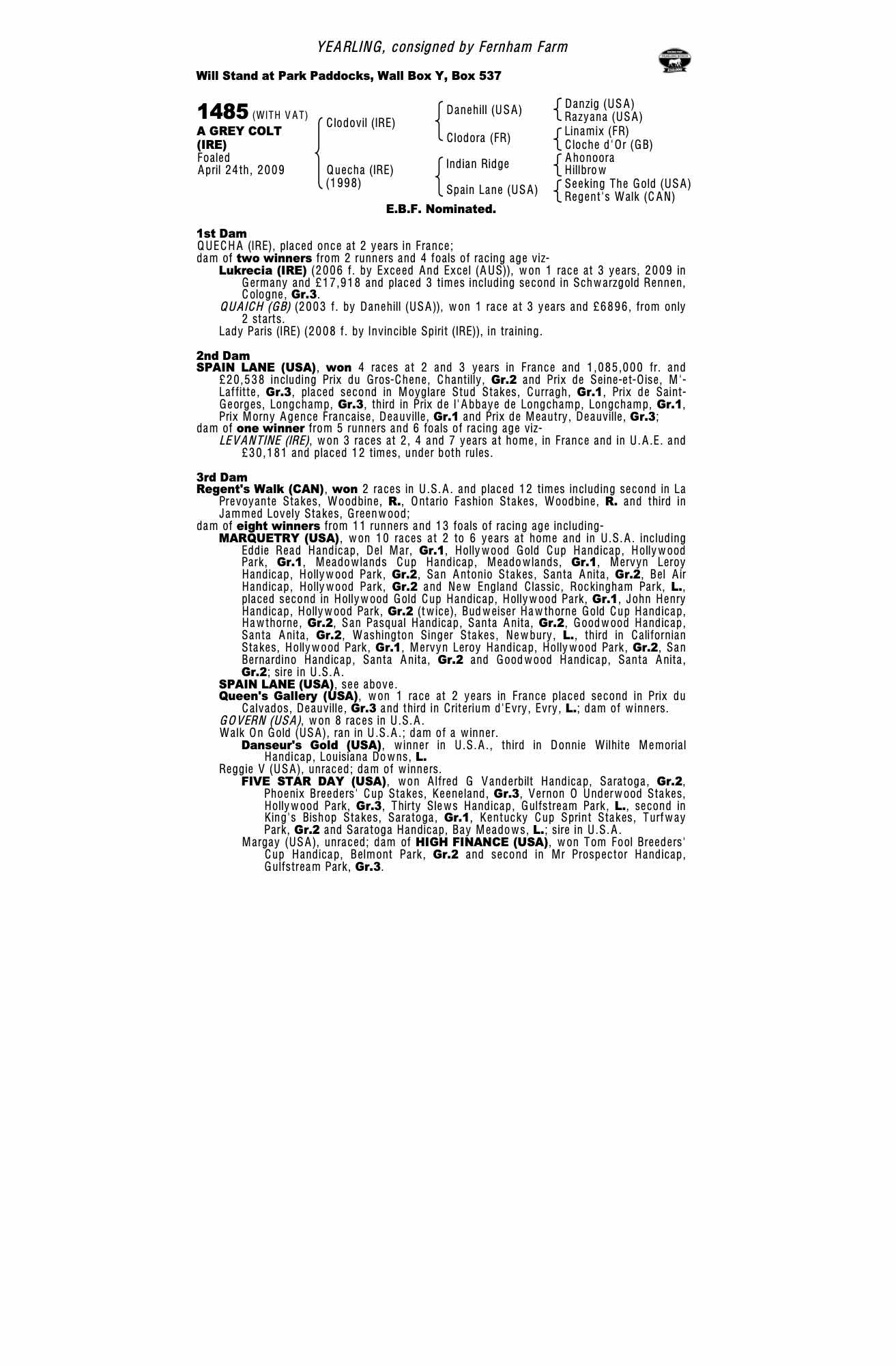 November Flat Sale 2021 lot 1453 Quaich (GB) (M. by Danehill (USA)), Clongiffen Stud=>Dr Ronan Tynan €1,500