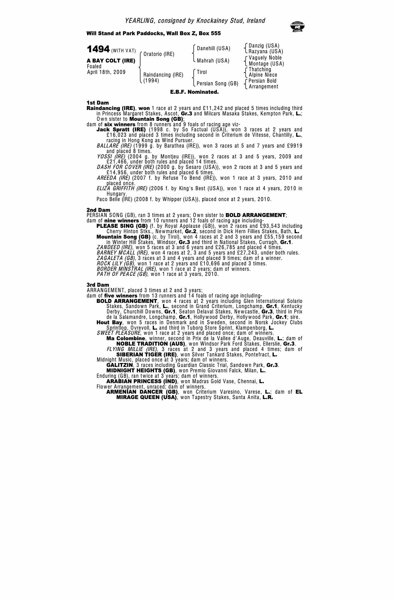 Consignor: Knockainey Stud, Ireland