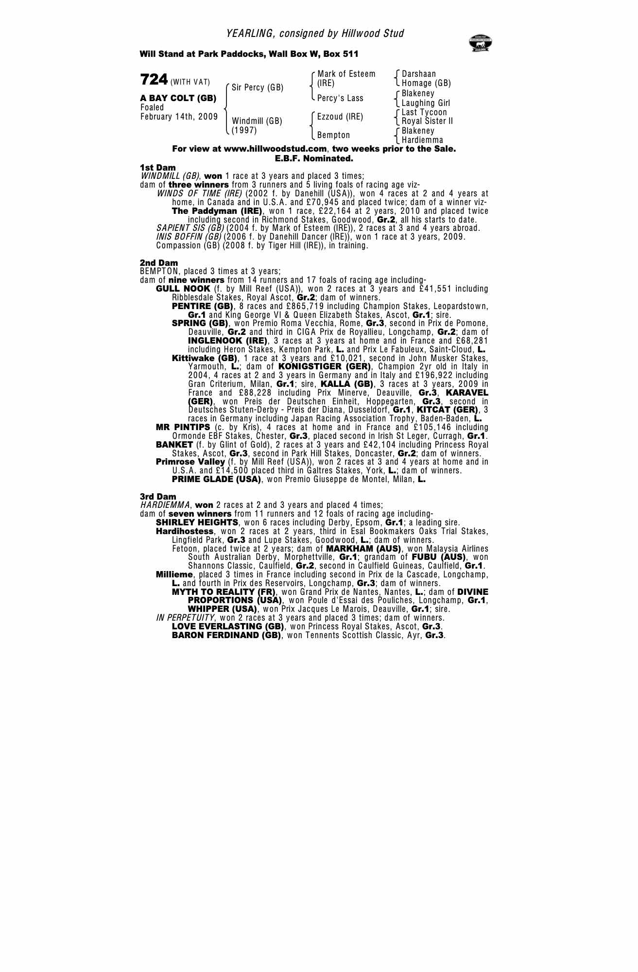 October Yearling Sale, Book 2 2009 lot 903 F. by Tiger Hill (IRE) 2008, Hillwood Stud=>John Warren Bloodstock 70,000 gns