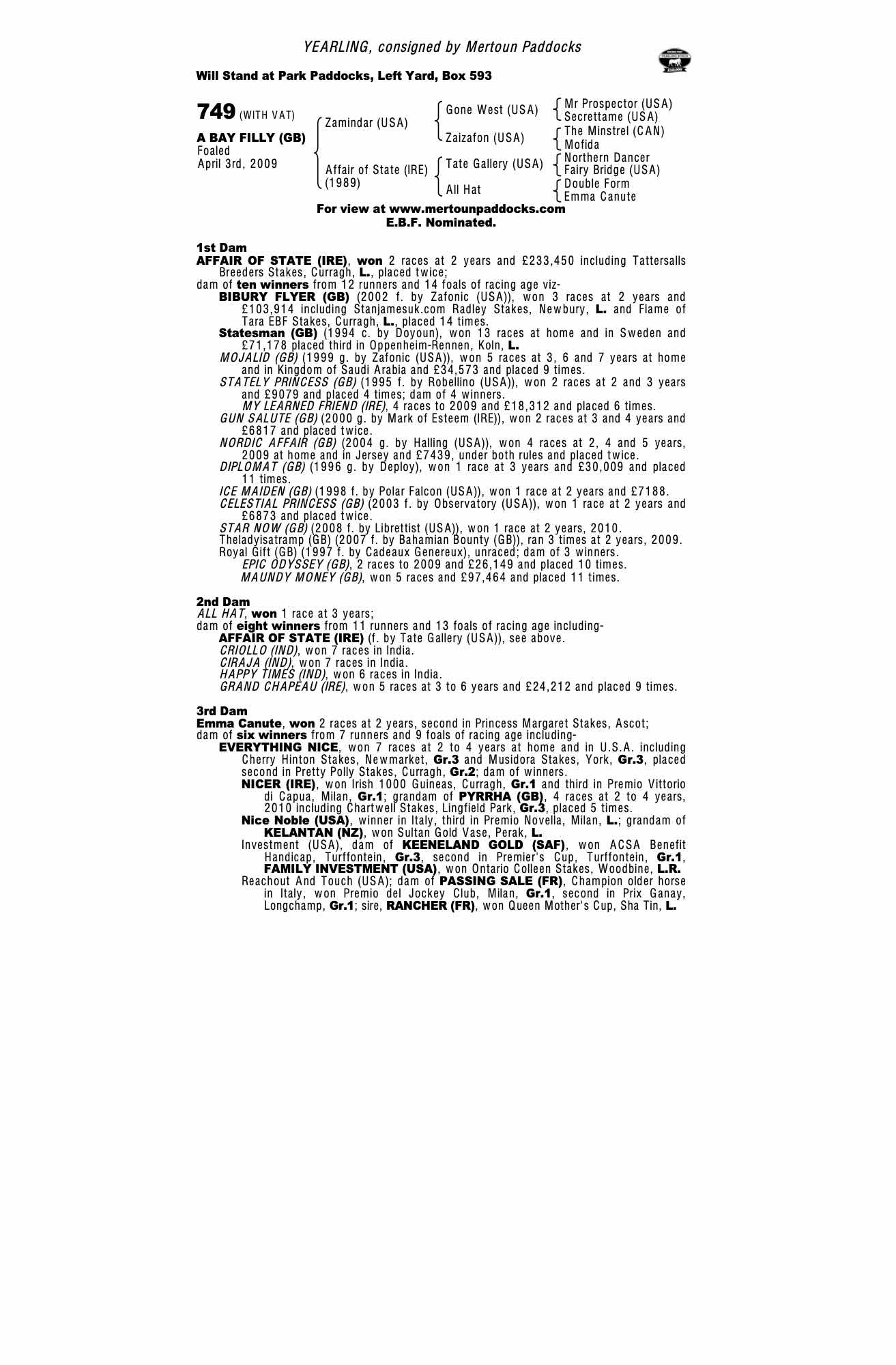 December Mare Sale 2012 lot 2143, Trillium Place Stables (D. Simcock)=>Whitsbury Manor Stud 90,000 gns