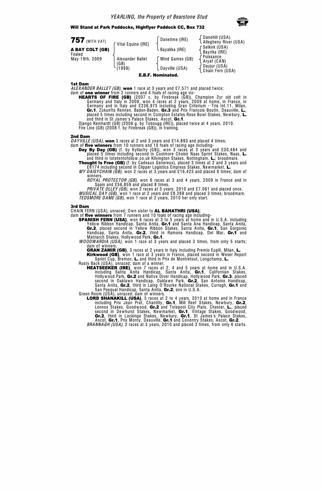 October Yearling Sale, Book 1 2012 lot 374 F. by Firebreak (GB) 2011, Bearstone Stud=>Rabbah Bloodstock 60,000 gns