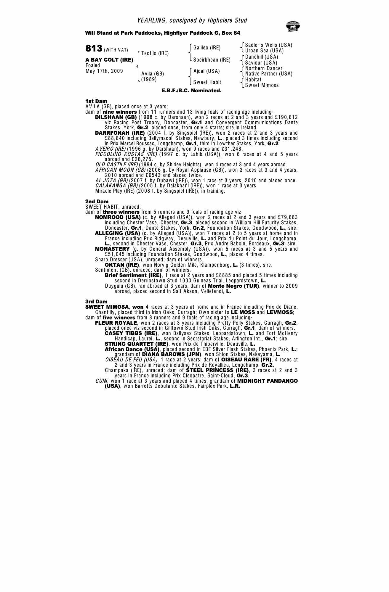 October Yearling Sale, Book 1 2009 lot 246 F. by Singspiel (IRE) 2008, Highclere Stud=>Blandford Bloodstock 120,000 gns