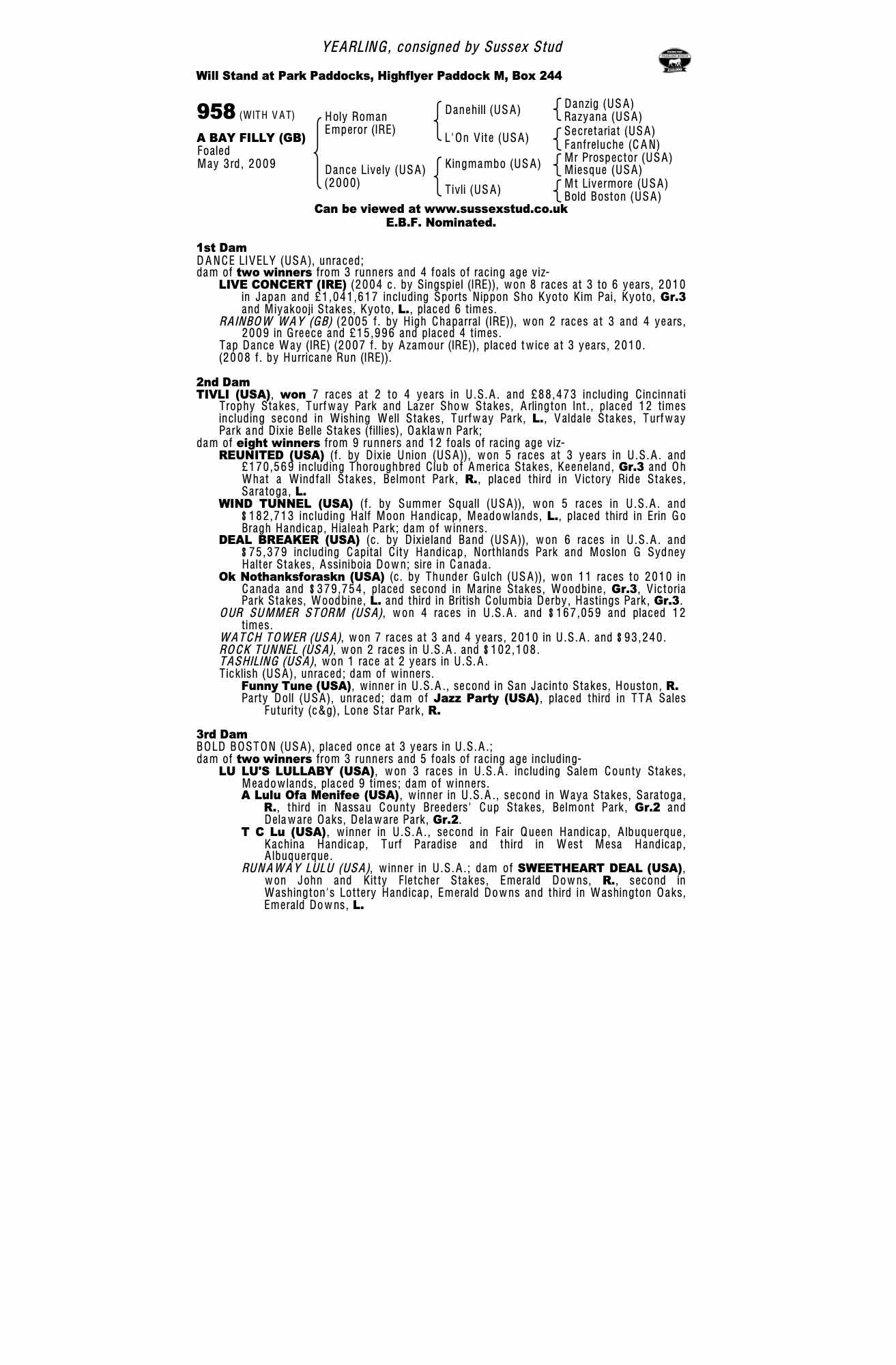 October Yearling Sale, Book 2 2009 lot 1072 F. by Hurricane Run (IRE) 2008, The Sussex Stud=>David Redvers Bloodstock 43,000 gns