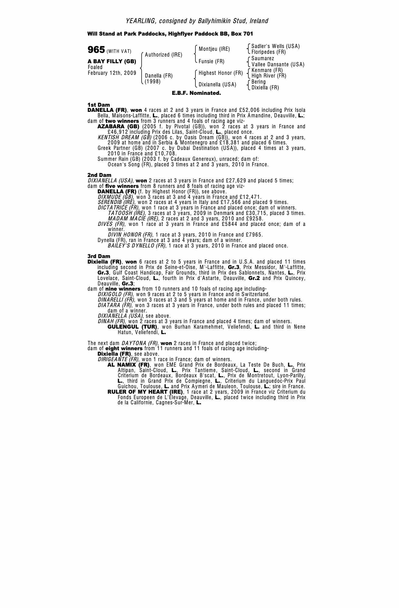 Consignor: Ballyhimikin Stud, Ireland