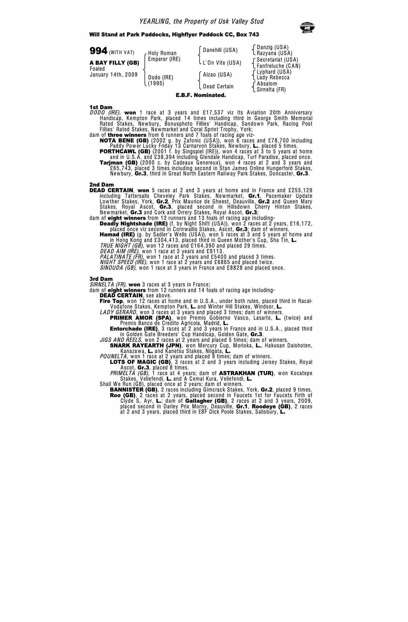 July Sale 2010 lot 123 Langland Bay (GB) (M. by Diktat (GB)), Usk Valley Stud=>Lot Not Sold 19,000 gns