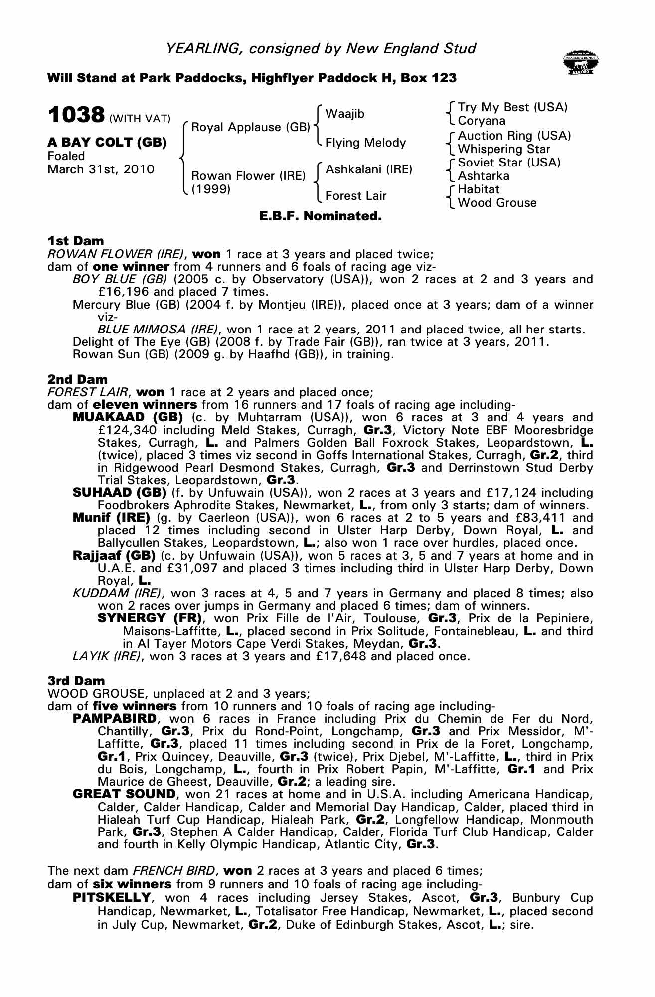 October Yearling Sale, Book 2 2012 lot 1003 C. by Champs Elysees (GB) 2011, New England Stud=>MW Easterby 3,000 gns