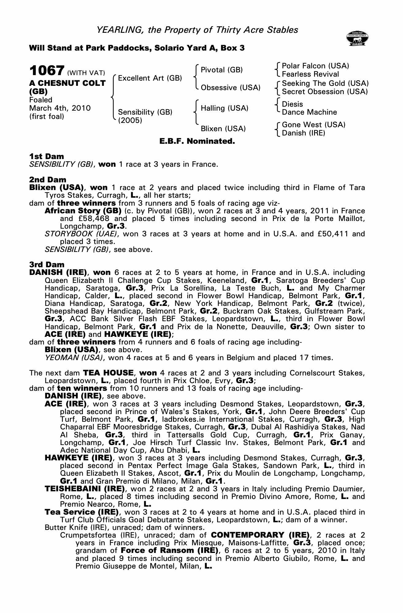 July Sale 2014 lot 740 Smageta (GB) (F. by Shirocco (GER)), Prestige Place (M. Botti)=>Mostafa MA El-Bakkoush 10,000 gns