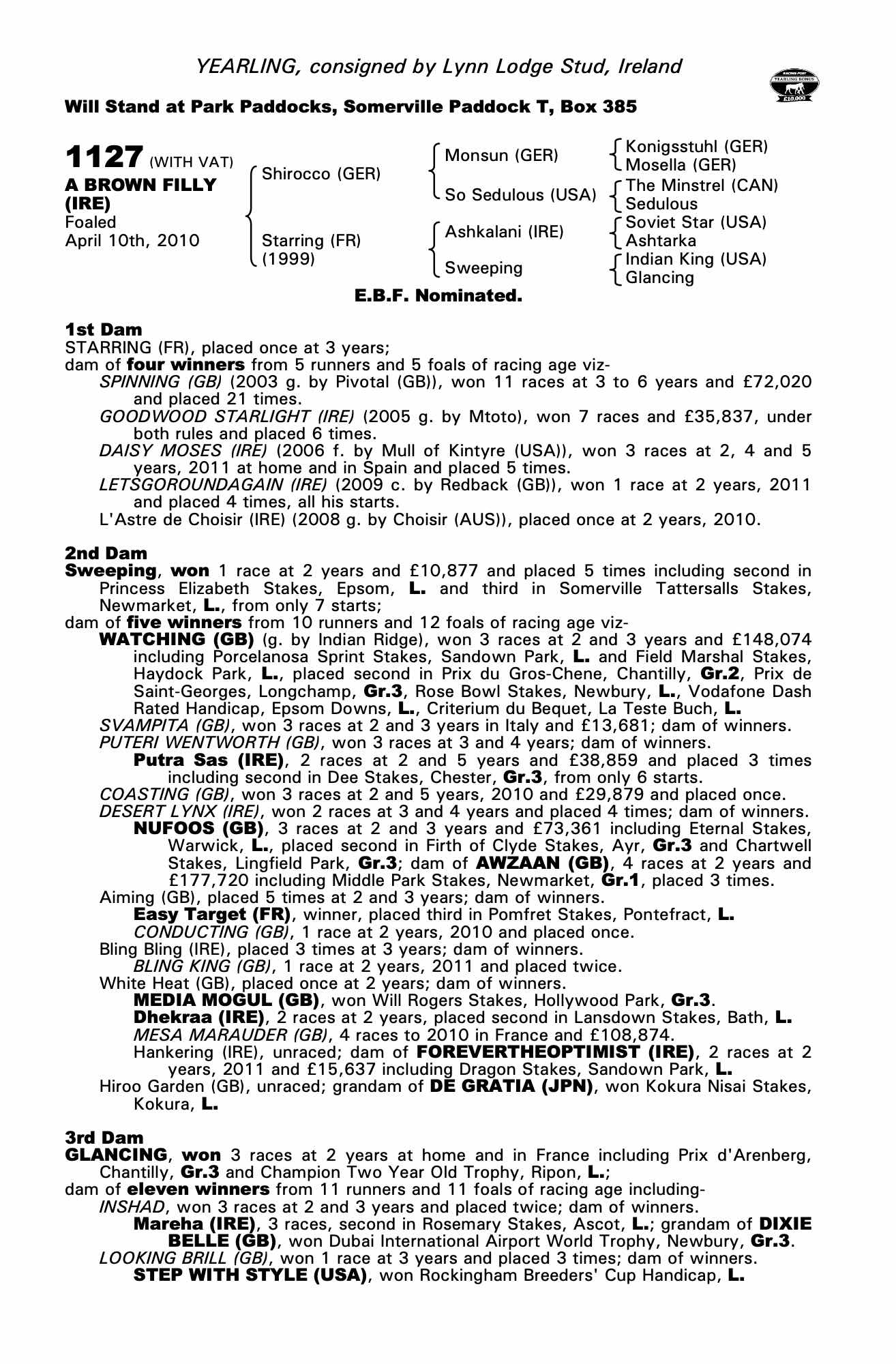 Consignor: Lynn Lodge Stud, Ireland