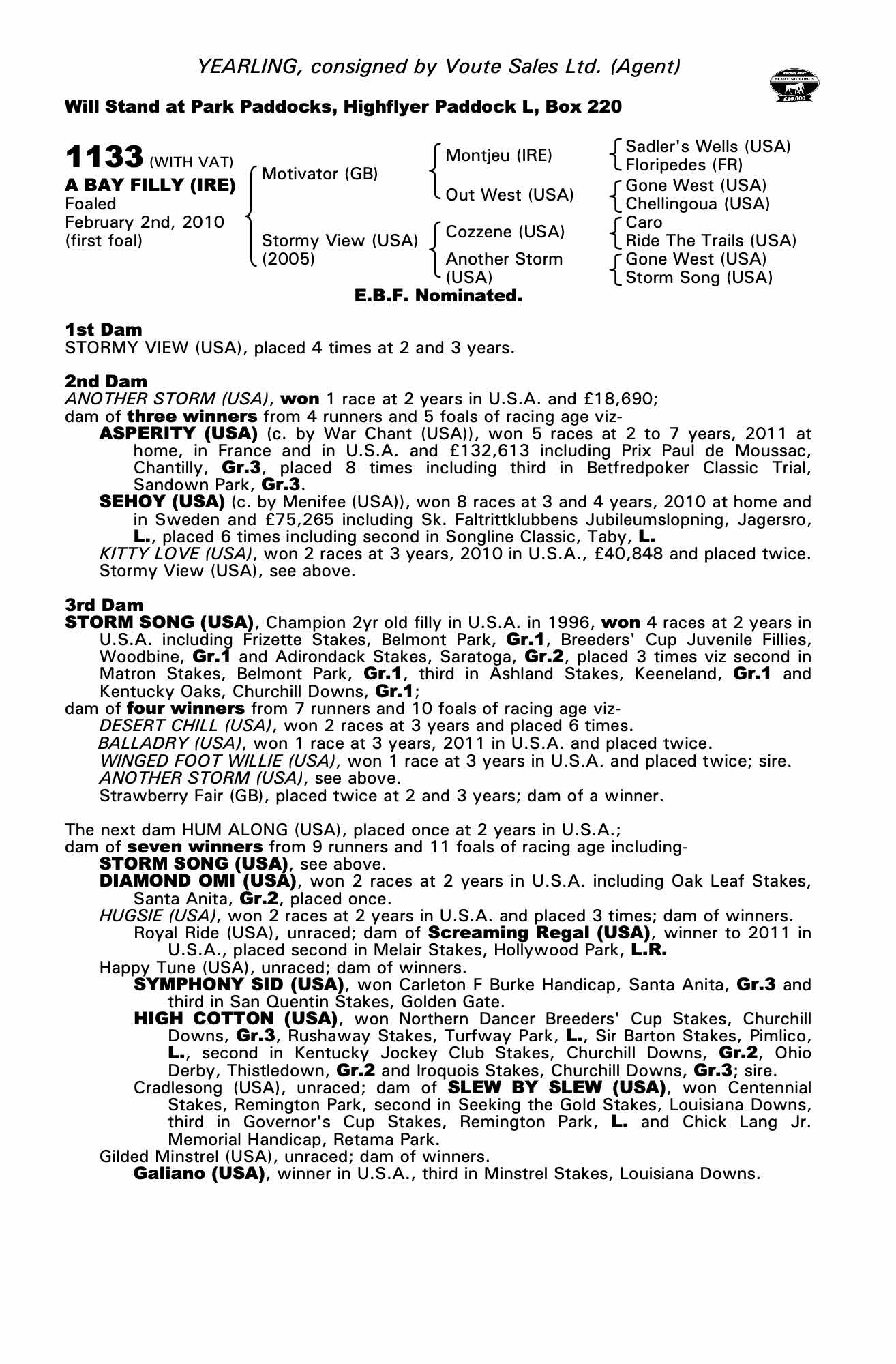 October Yearling Sale, Book 2 2013 lot 880 F. by Dark Angel (IRE) 2012, Grove Stud, Ireland=>Vendor 15,000 gns