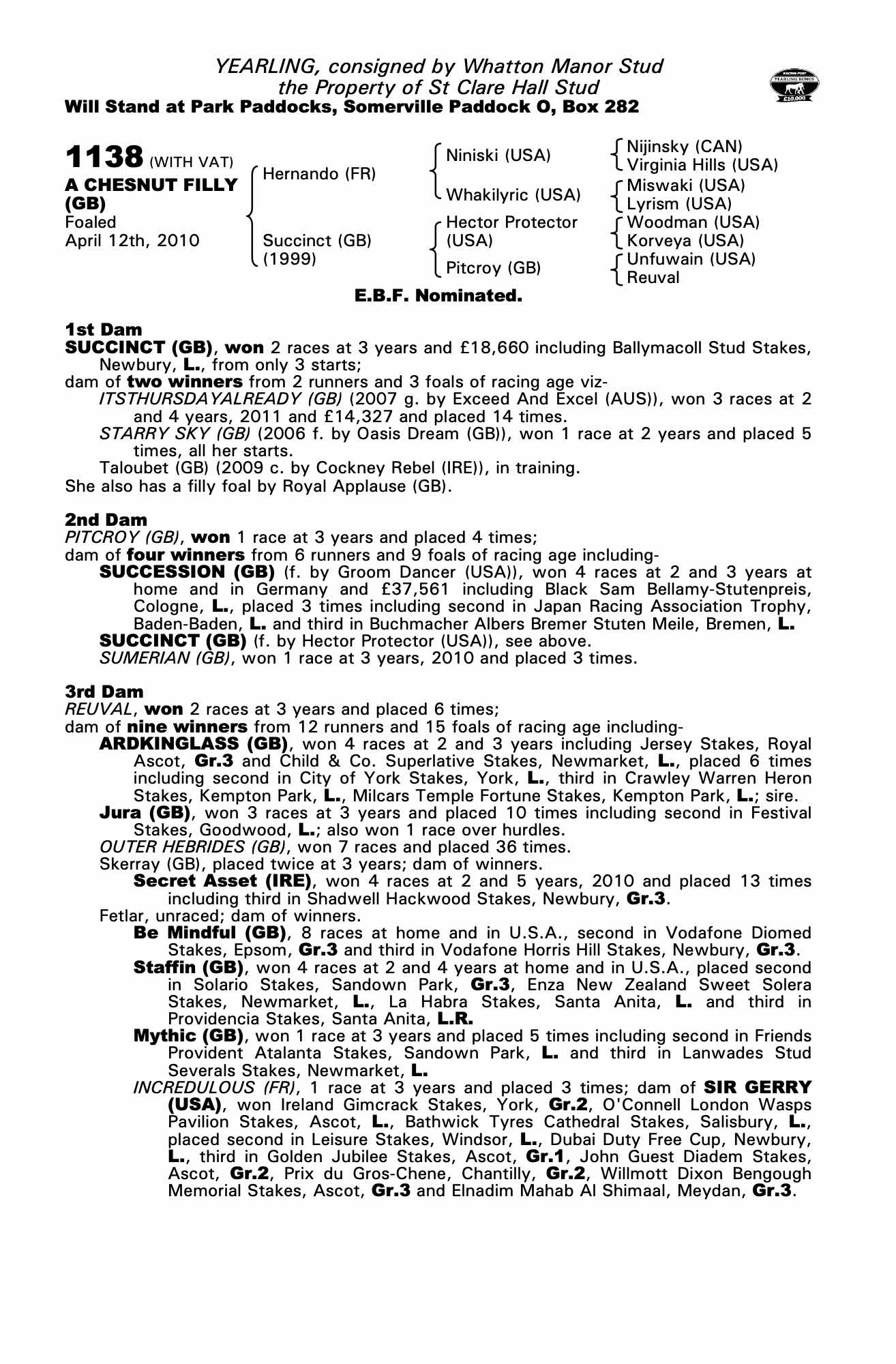 October Yearling Sale, Book 2 2015 lot 1347 F. by Nathaniel (IRE) 2014, Kirtlington Stud=>Vendor 15,000 gns