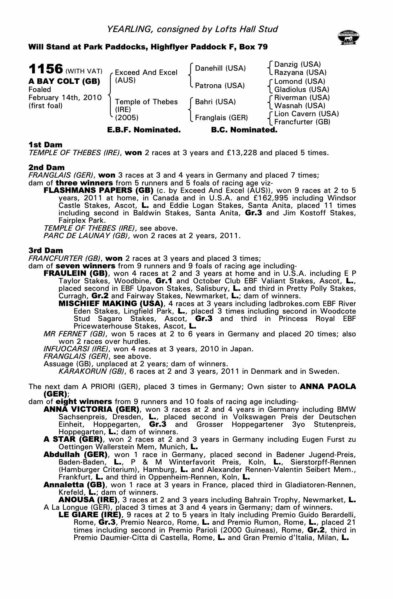 Consignor: Lofts Hall Stud