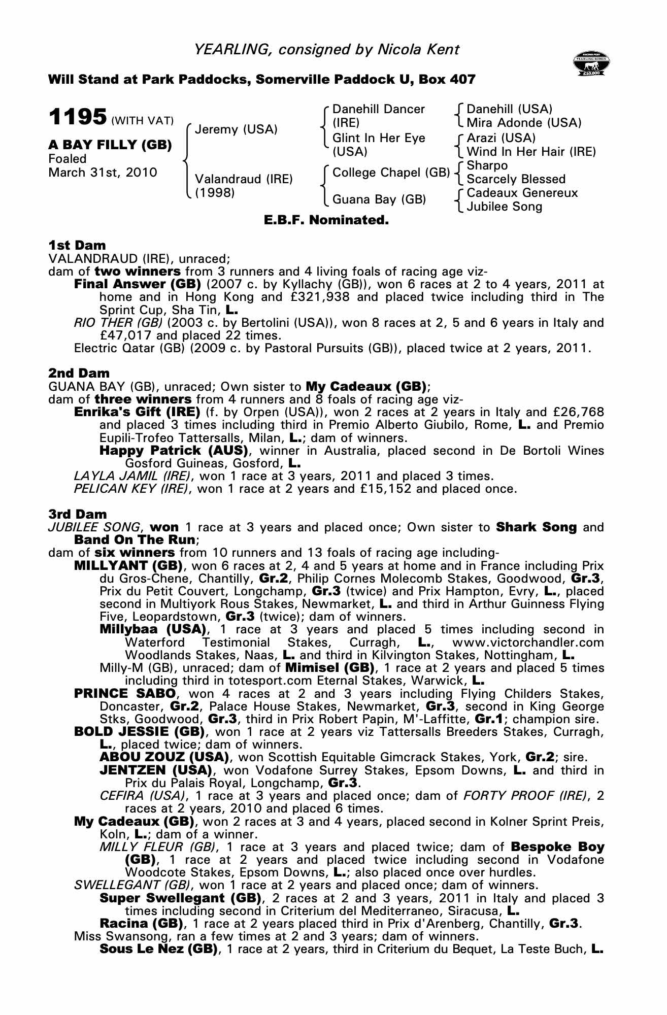 September Yearling Sale Part II 2019 lot 526 F. by Pearl Secret (GB) 2018, Ms. Nicola Kent=>Raphael Quintas €1,500