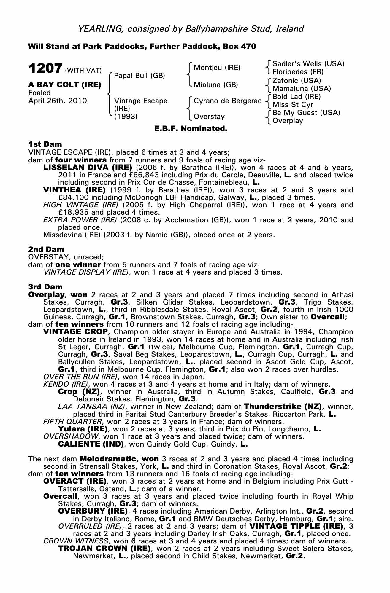 Consignor: Ballyhampshire Stud, Ireland
