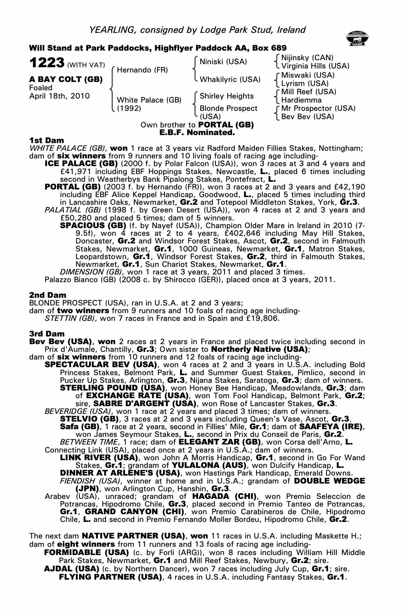Consignor: Lodge Park Stud, Ireland