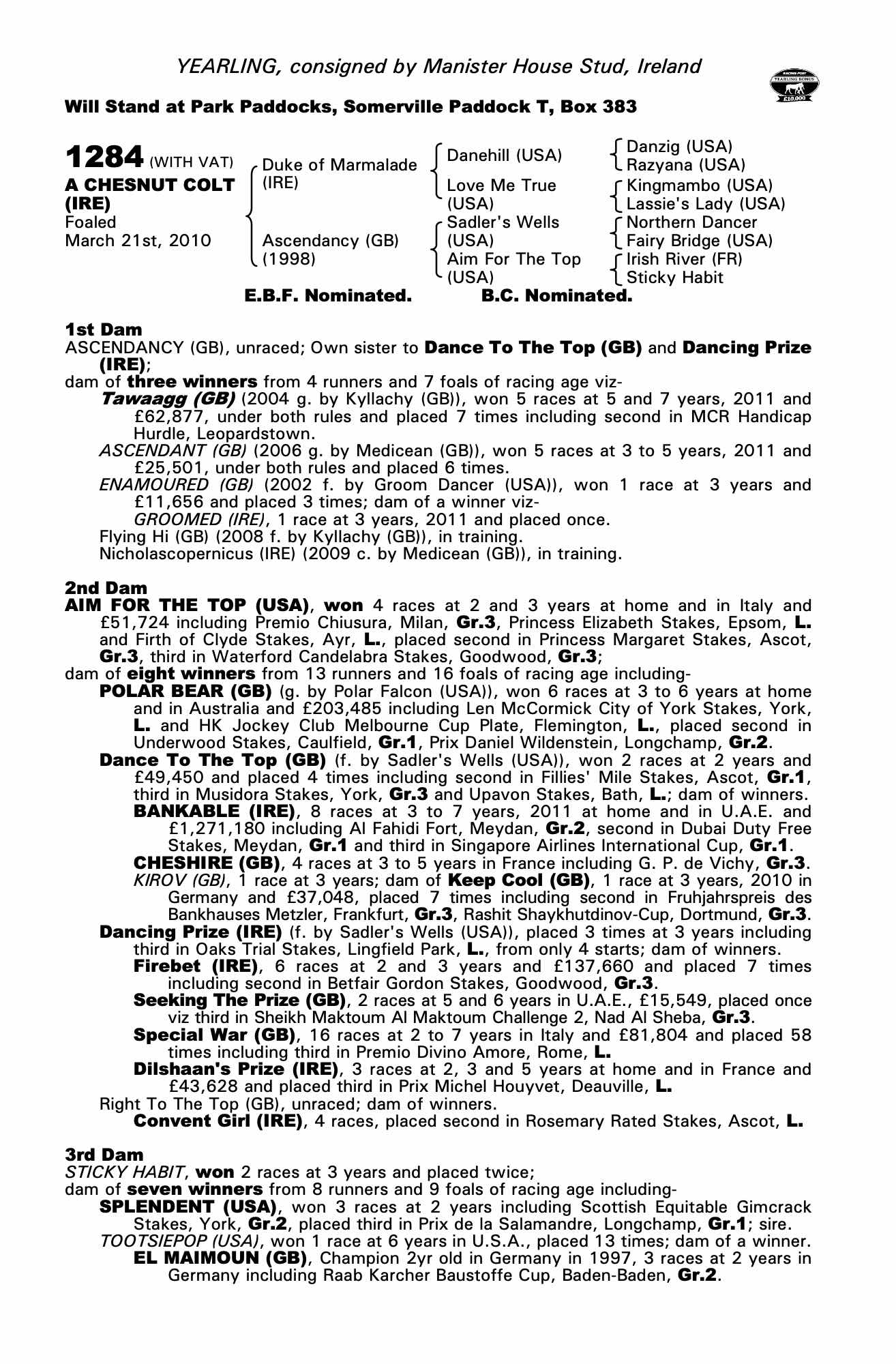 Consignor: Manister House Stud, Ireland