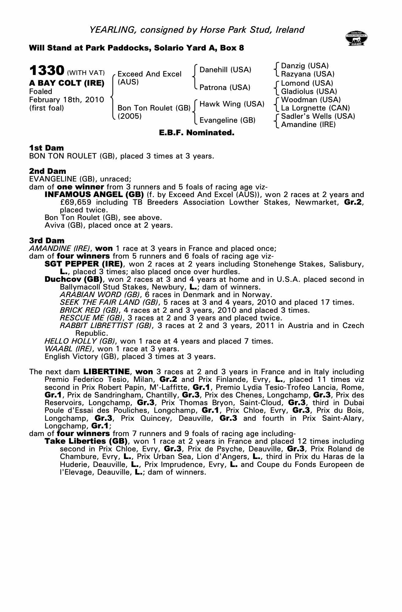 October Yearling Sale, Book 2 2013 lot 1096 C. by Excellent Art (GB) 2012, Horse Park Stud, Ireland=>Vendor 16,000 gns
