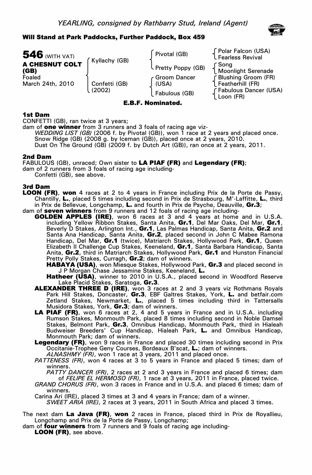 Consignor: Rathbarry Stud, Ireland (Agent)