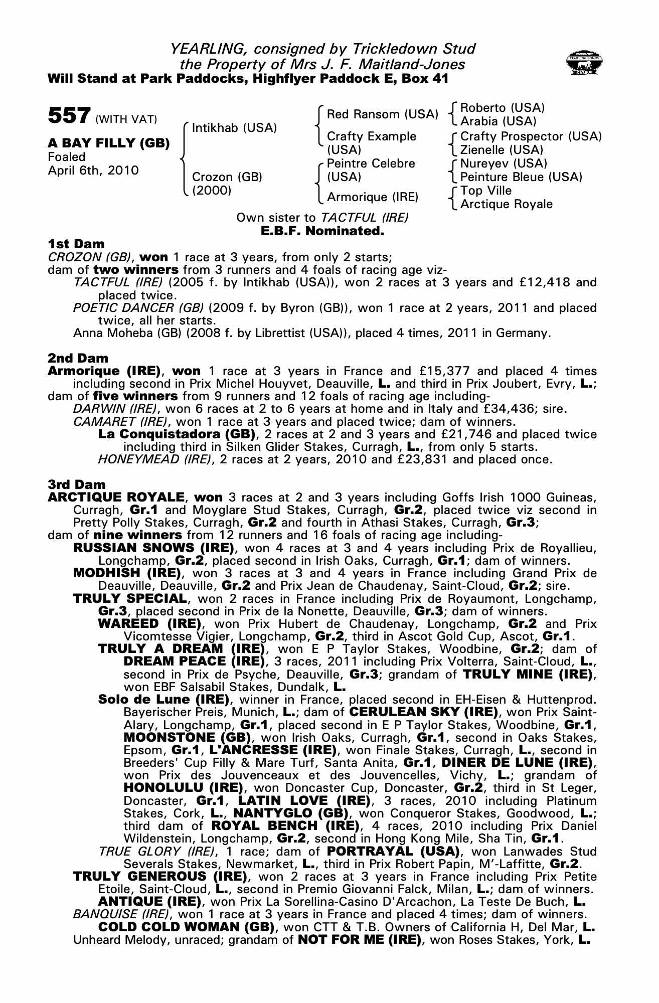October Yearling Sale, Book 2 2010 lot 945 F. by Byron (GB) 2009, Trickledown Stud=>Clive Cox 5,000 gns