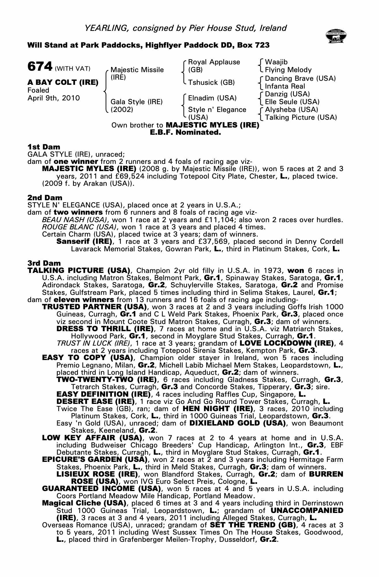 Consignor: Pier House Stud, Ireland