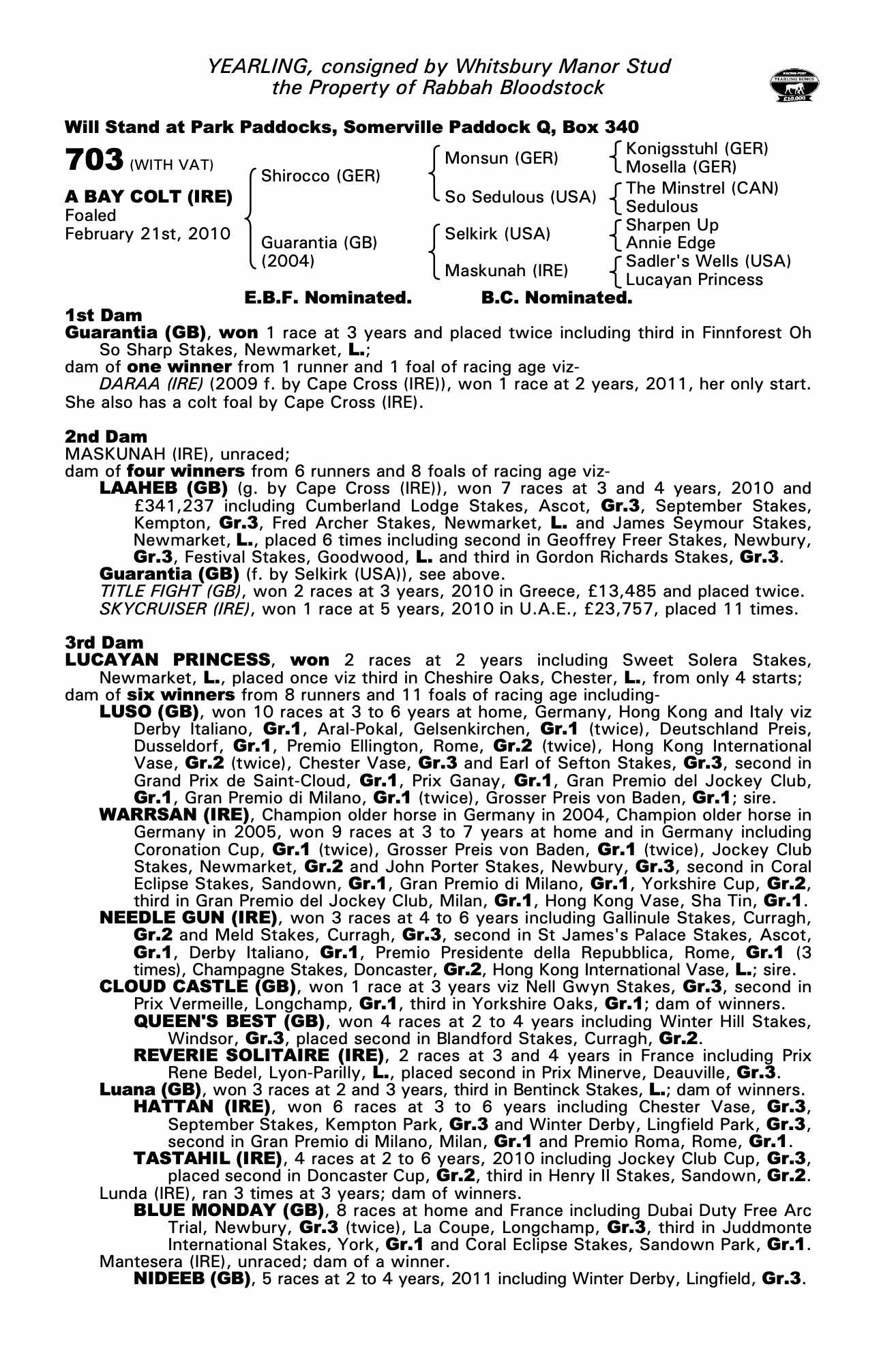 Consignor: Whitsbury Manor Stud