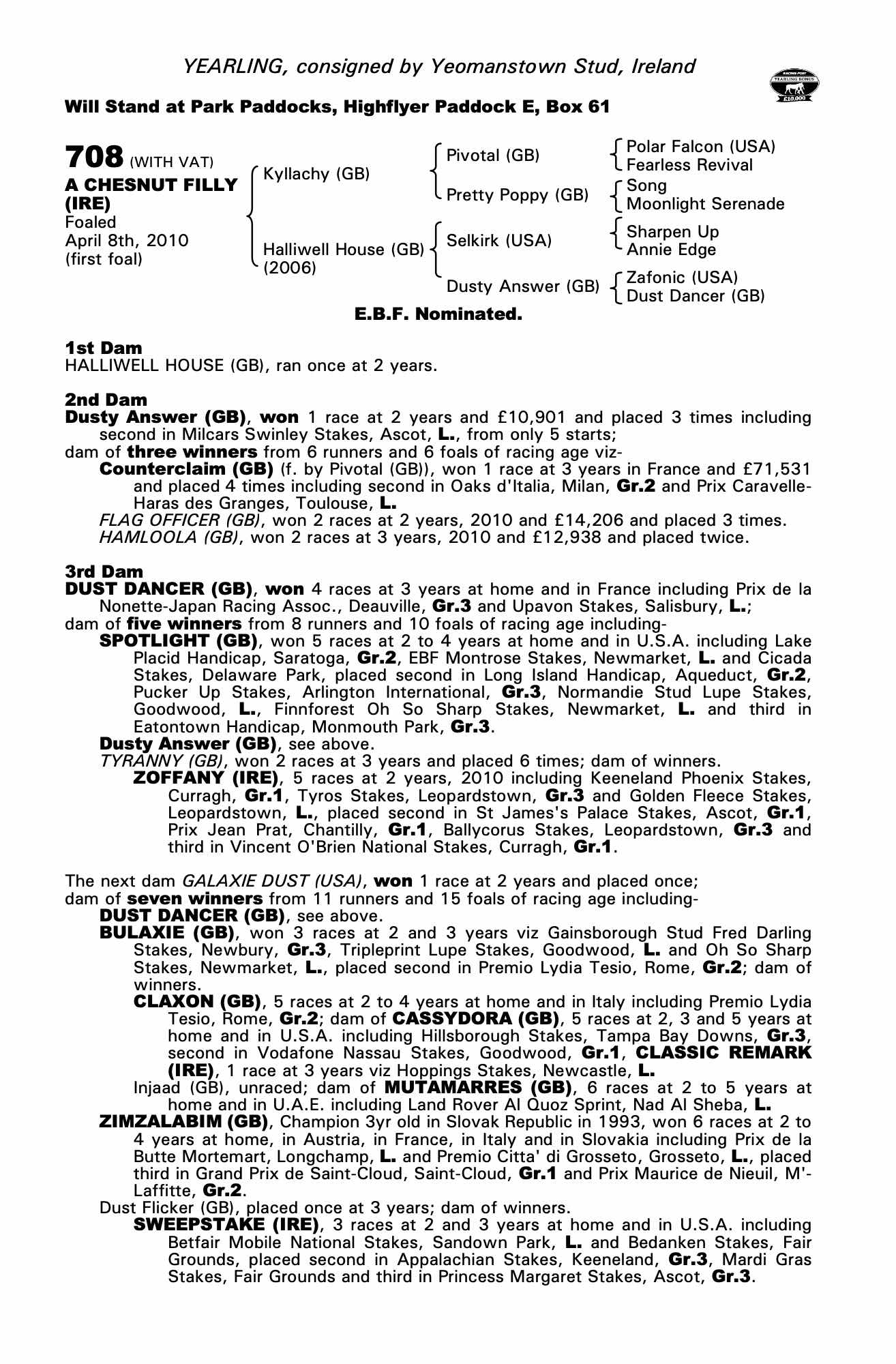 October Yearling Sale, Book 2 2013 lot 1342 F. by Dark Angel (IRE) 2012, Yeomanstown Stud, Ireland=>B Smart 20,000 gns