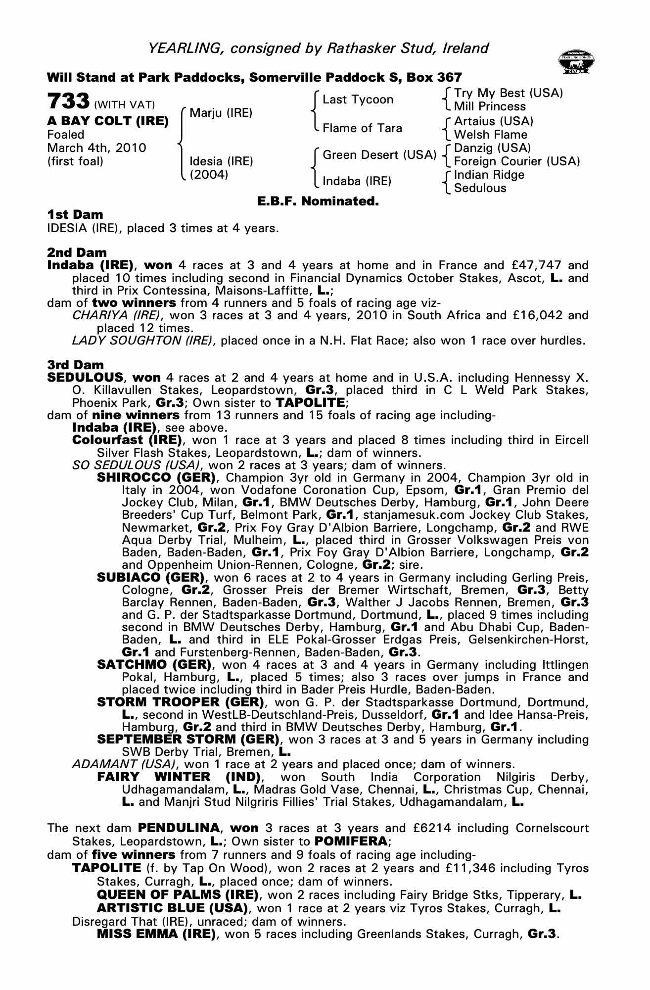December Foal Sale 2010 lot 605, Drumachon Stud, Ireland=>Emerald Bloodstock 25,000 gns