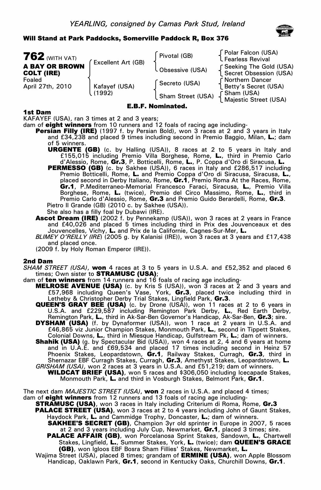 December Foal Sale 2011 lot 762 C. by Art Connoisseur (IRE) 2011, Chinook Farm, Ireland (Agent)=>BBA Ireland 8,000 gns
