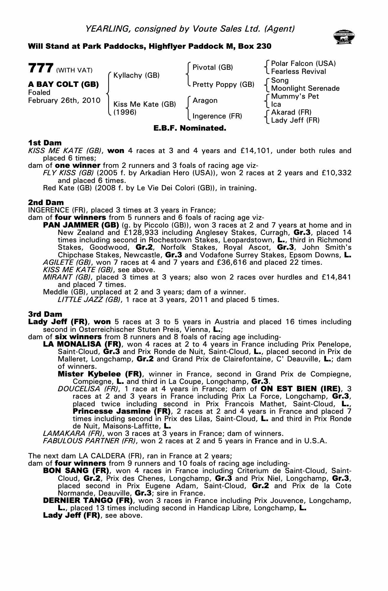 Consignor: Voute Sales Ltd. (Agent)