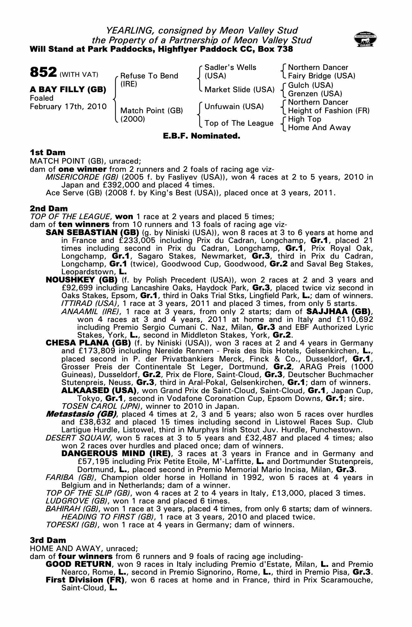 October Yearling Sale, Book 2 2014 lot 1155 F. by Poet's Voice (GB) 2013, Brightwalton Stud=>Lot Not Sold 11,000 gns