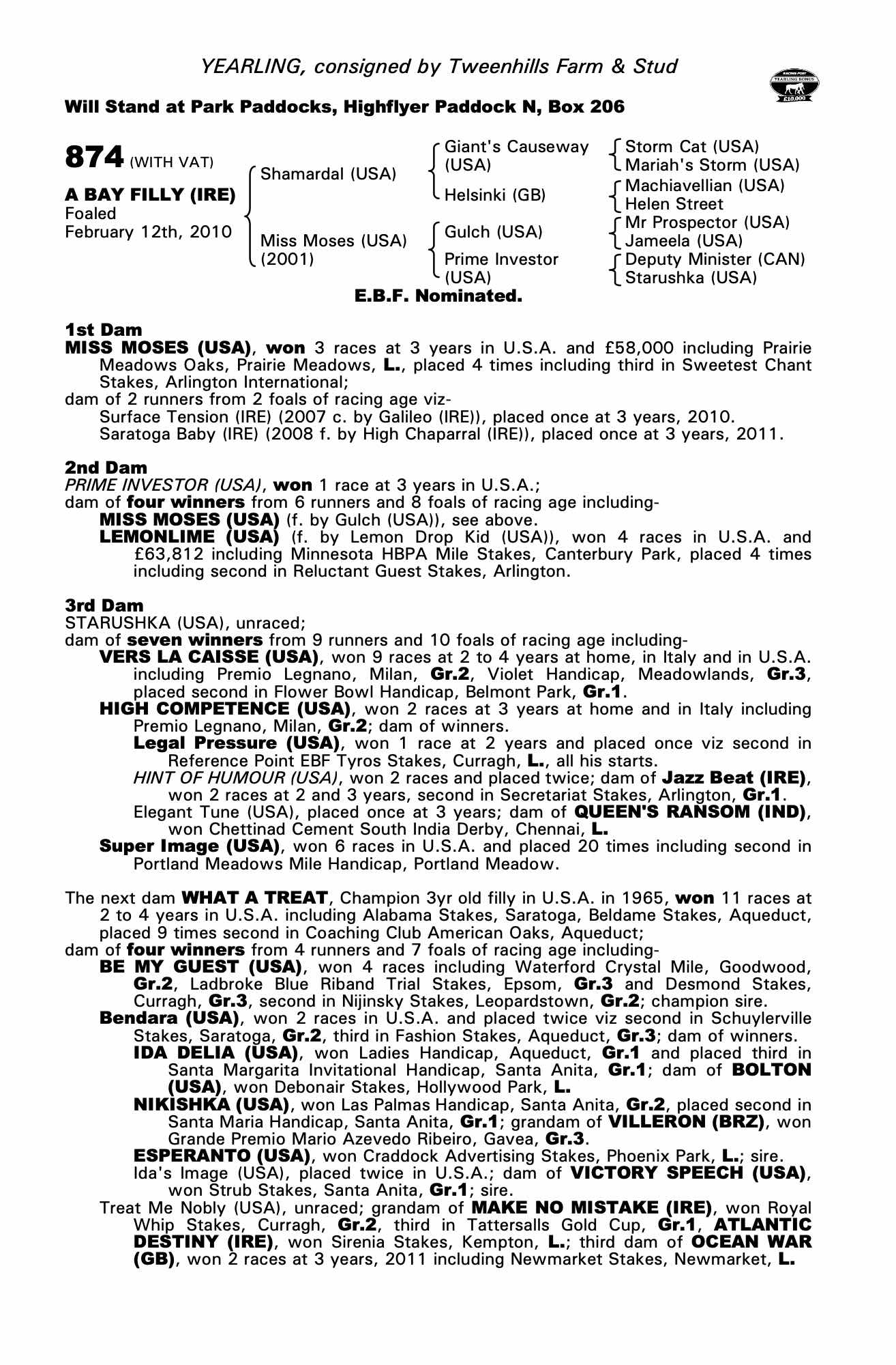 December Foal Sale 2010 lot 890, Piercetown Stud, Ireland (Agent)=>Tweenhills/Rathmore 42,000 gns