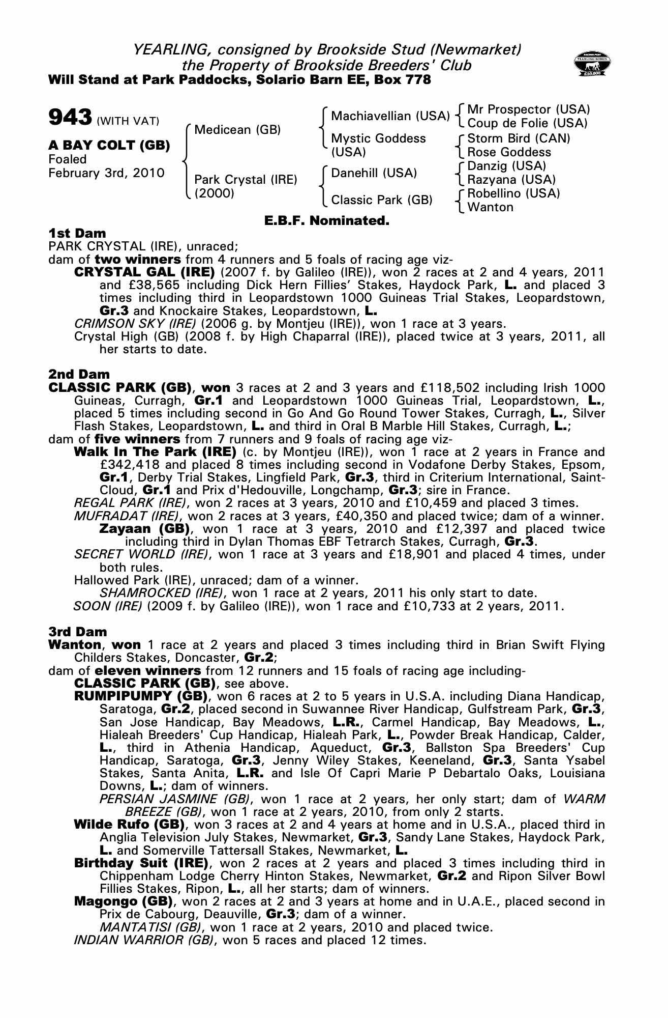 Consignor: Brookside Stud (Newmarket)