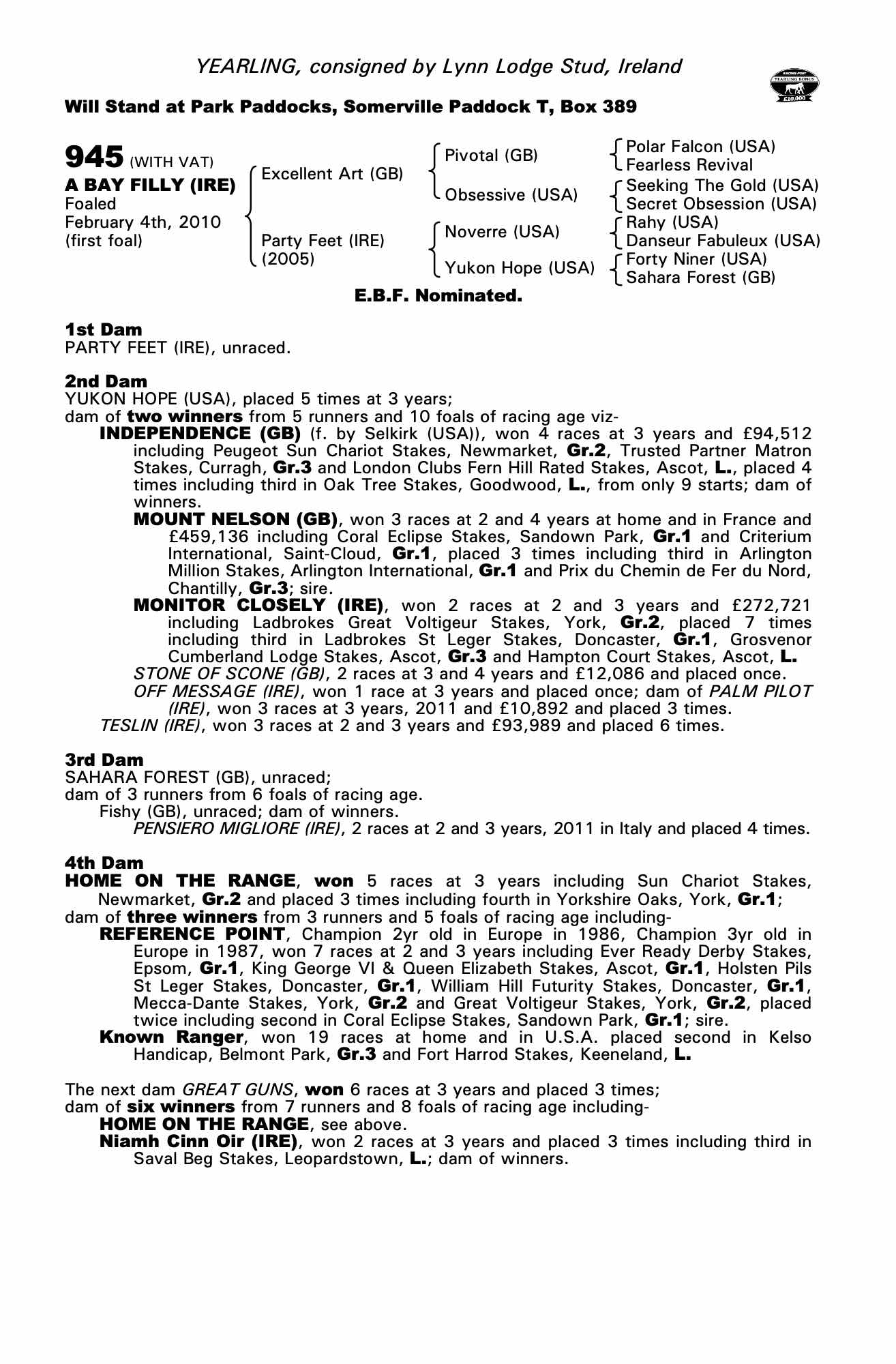 Consignor: Lynn Lodge Stud, Ireland