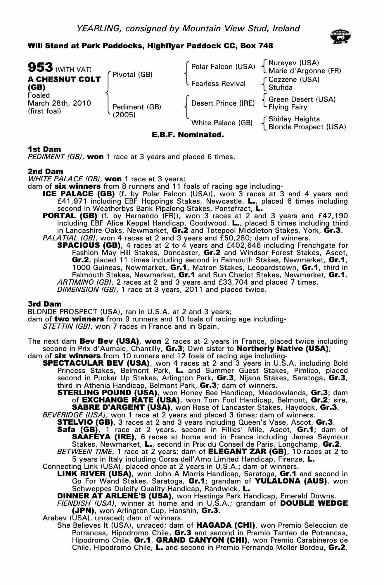October Yearling Sale, Book 2 2012 lot 888 F. 2011, Newtown Stud, Ireland=>Vendor 35,000 gns