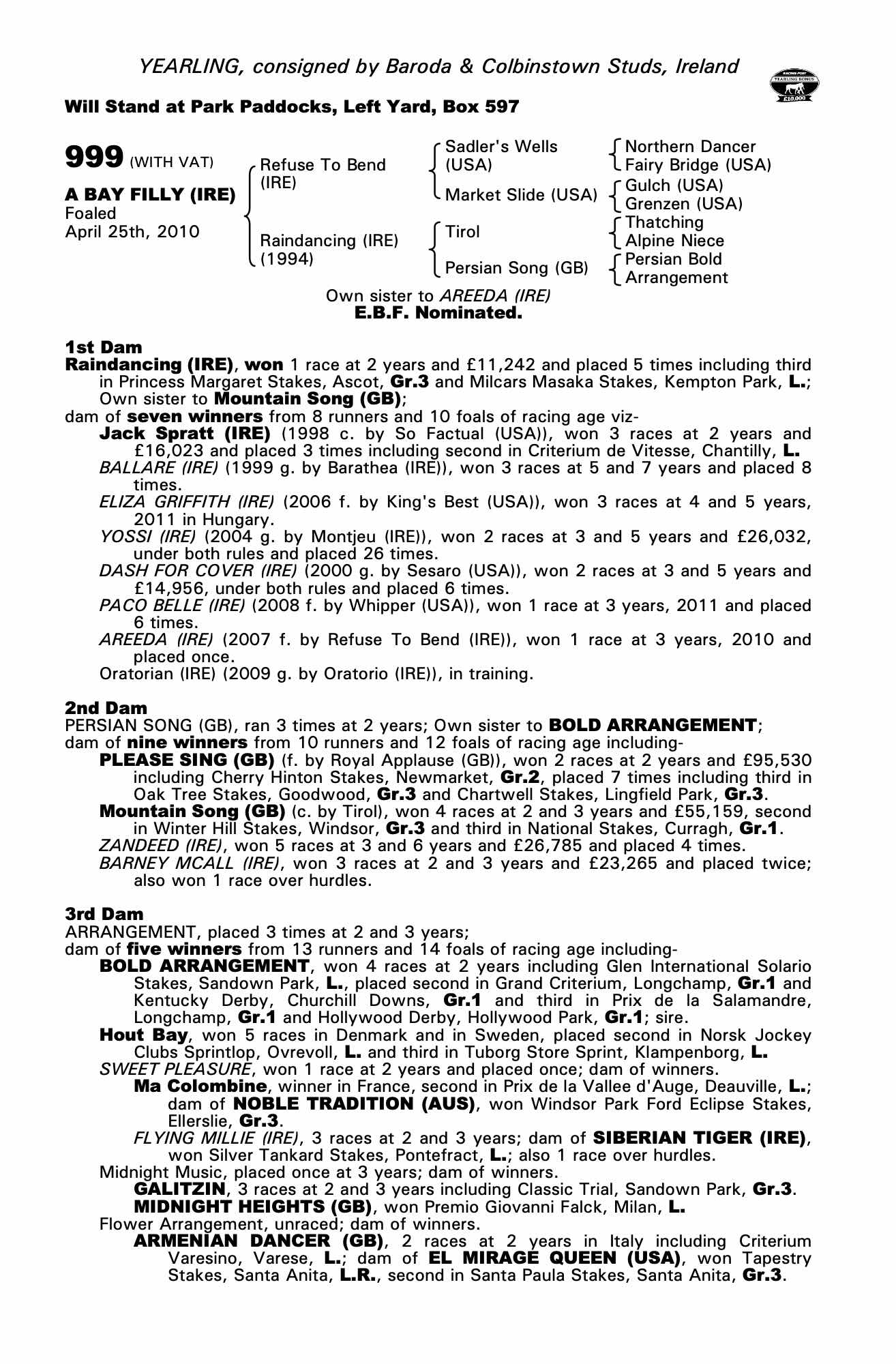 Consignor: Baroda & Colbinstown Studs, Ireland