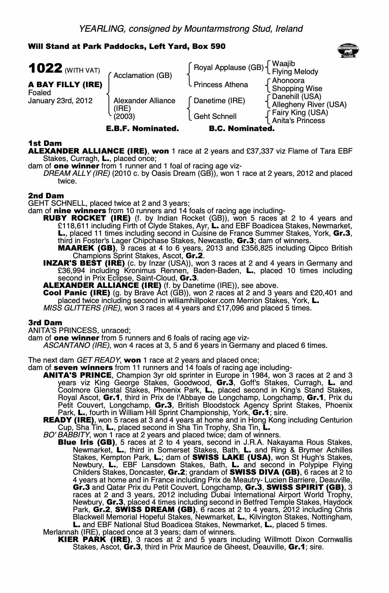 Consignor: Mountarmstrong Stud, Ireland