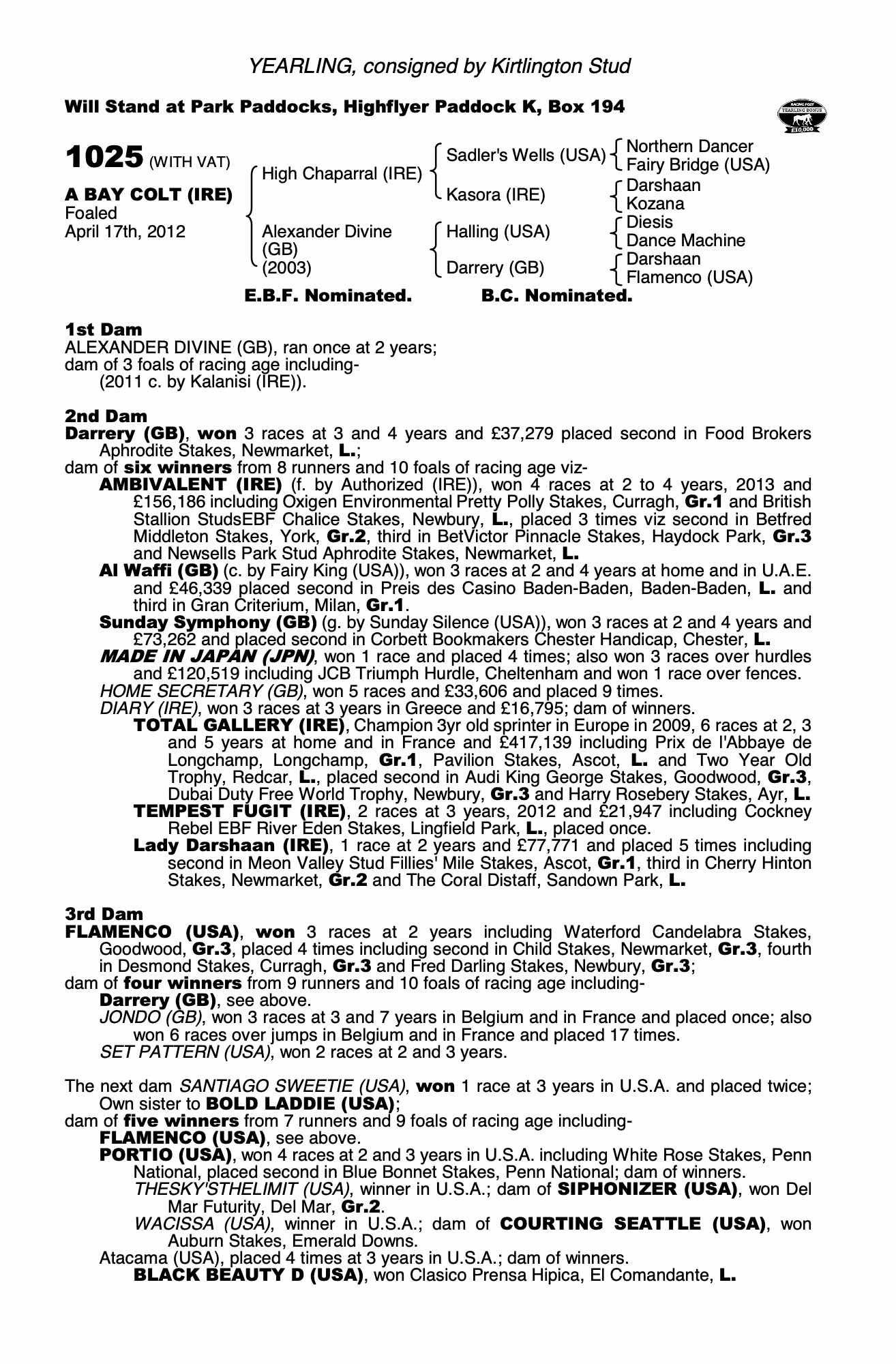 Consignor: Kirtlington Stud