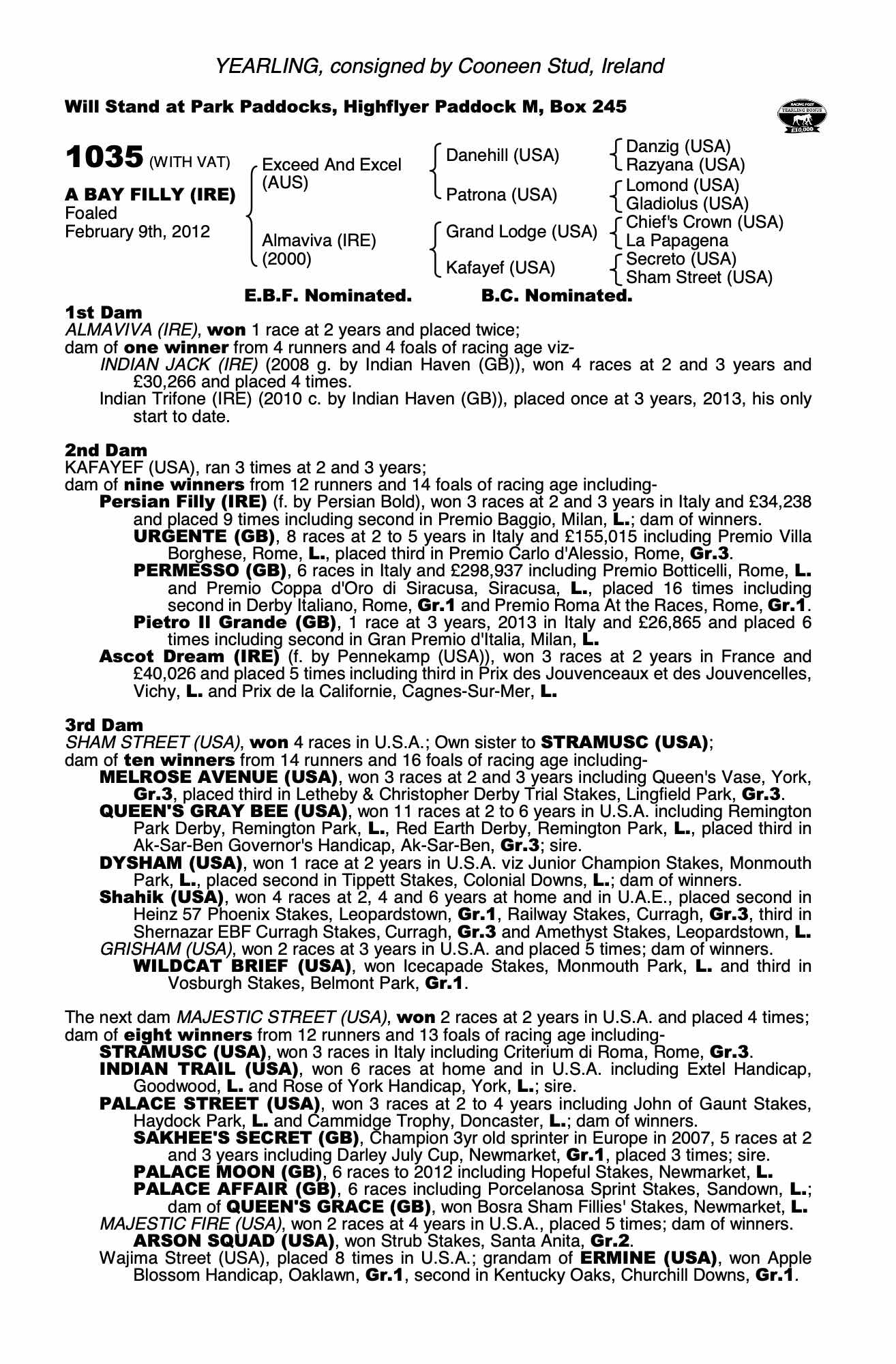 December Yearling Sale 2014 lot 57 F. by Dream Ahead (USA) 2013, Cooneen Stud, Ireland=>Vendor 20,000 gns